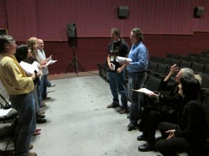 Thankfully, ours was nothing like that. I’ll take a crowded audience of film buffs with glasses of wine in their hands any day. They didn’t seem to mind the tradeoff of conversational delivery for actually being able to hear in the back row. But I was nervous. I’ve sat, mumbling the dialog of my screenplays to myself, in front of my computer, for days. I rarely project. I never use body language. I don’t use high voices for females and my best Johnny Cash for males. So watching the rehearsal was like watching a Shakespearean adaptation of my dark, disturbing drama. It worked brilliantly for the screenplay before mine, about moonshiners and revenuers, but would it ring true on a modern-day drama about a sex offender?
