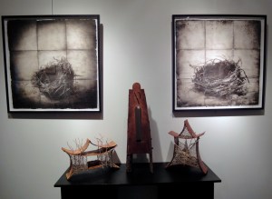 If you go to the opening of “Organics: the Art of Nature” tomorrow night at USCB’s Center for the Arts Galley you will see even more evidence of my relief. It’s not just Gary’s work on display; he is showing with the fiber artist Kim Keats for the first time since they started collecting each other’s work. It makes sense – both artists use painstakingly intricate, even archaic techniques to make their one-of-a-kind creations. But the show is a continuum more than collaboration – on one end Kim constructs works of art from natural elements and on the other, Gary deconstructs nature into elemental shapes, tone and texture.
