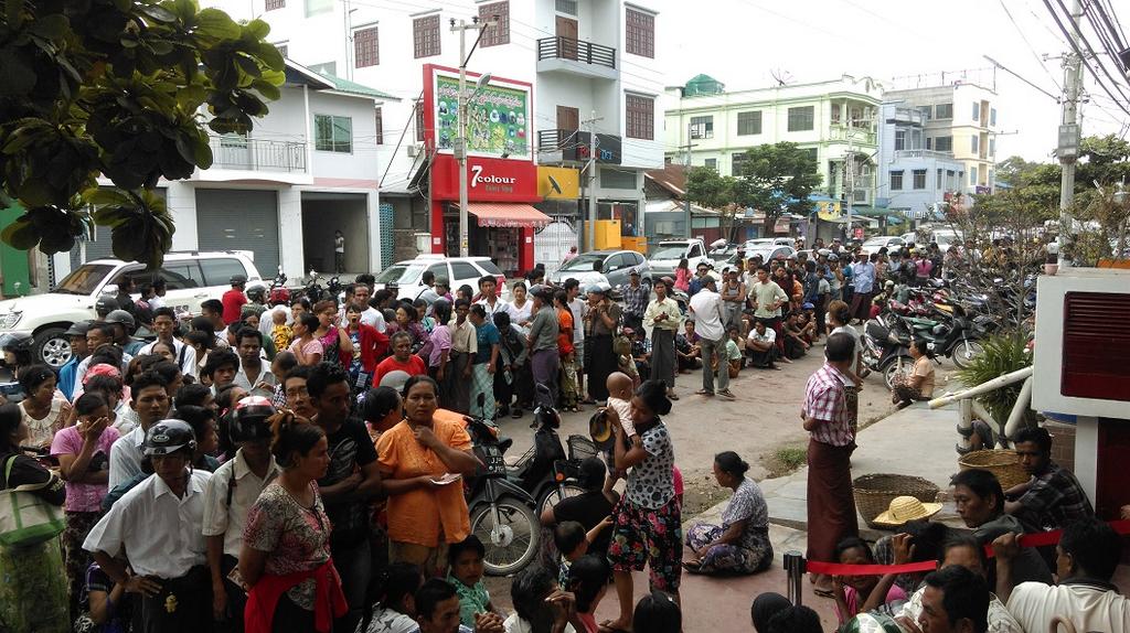 Here’s a picture from one of those company’s Facebook site the hot August day they started selling cell phones in Mandalay. The cops taking my picture with their phones right now were probably in that line somewhere.