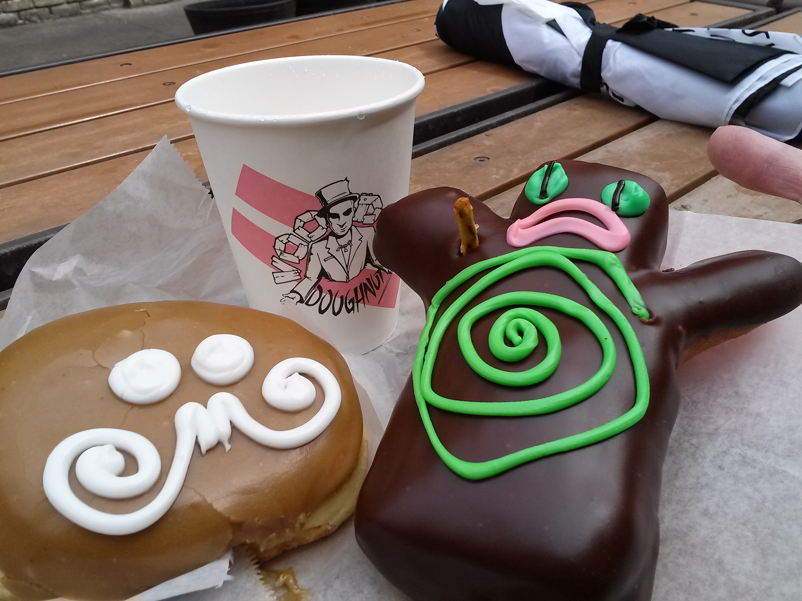 My attention wandered as I waited for her reply. A witty Millennial functioning as line motivator/donut huckster was describing how one uses the pretzel extruding from the trademark voodoo doll-shaped donuts to stab its belly until raspberry goo oozes forth, ensuring a tasty curse.